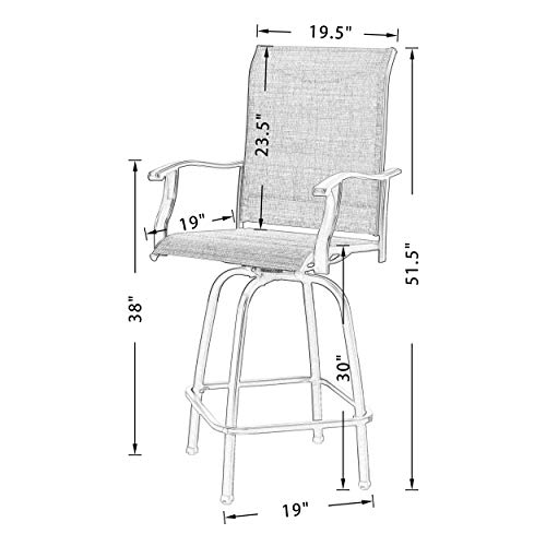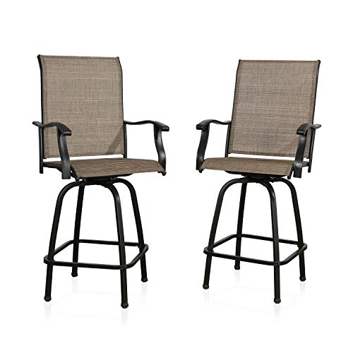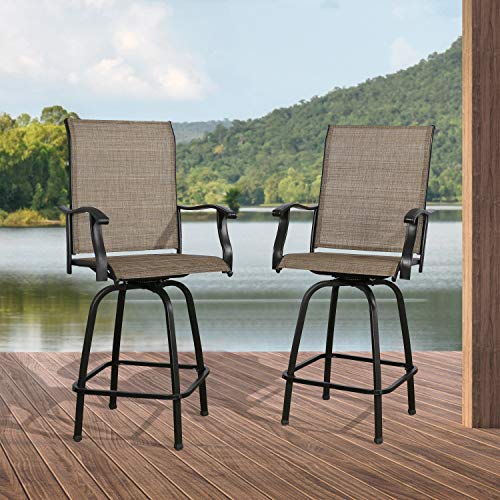 PATIO TREE Outdoor Height Swivel Bar Stools, Patio Textilene Mesh Fabric Height Bistro Chairs with Curved Backrest and…