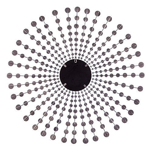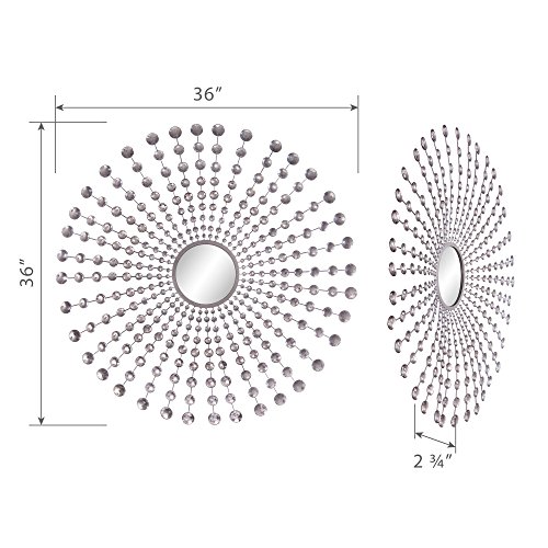 Patton Wall Decor Jeweled Silver Round Starburst Mirror Add eye-catching appeal to your walls with this striking wall mirror, featuring a silver-finished metal design and a striking sunburst silhouette. Its jeweled spokes add a touch a beauty and glam. Even as it is 36 inch diameter make it the easiest remark piece to hang on a big, blank wall.