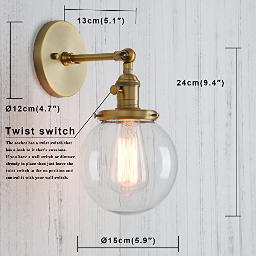 Includes a swivel for simple arm adjustment and a 5.9″ clear glass globe shade. May also be mounted the shade with bulb facing upwards or hanging downwards. It also May also be mounted at the ceiling and hung vertical as a flush ceiling.
