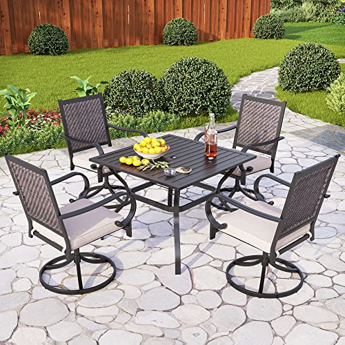 【High-Density & Durable Iron Frame】Out of doors swivel dining chair with cushion adopts high density reinforced iron frame, which is authoritatively certified for durability. Heavy-duty wrought iron frame plated with black gold dot e-coating for rust and water resistance. Bold wrought iron seat base and 16″ seat height promises strong stability, will not shake and would possibly not wobble in long years use