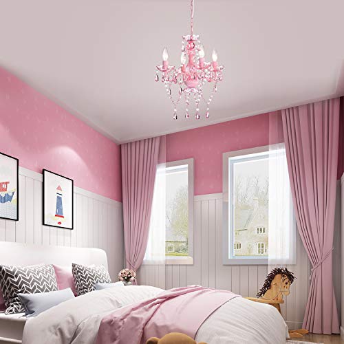 【PINK CHANDELIER FOR GIRLS ROOM】 This mini crystal chandelier fits for 150-200 sq. ft. small chandelier in perfect for bedroom chandelier, pink chandeliers for girls rooms,kids chandelier,bathroom chandelier,nursery chandelier,dining room chandelier,girls chandelier for bedroom,closet chandelier light. 【CRYSTAL PENDANT LIGHTING SIMPLE ASSEMBLE & QUICK INSTALLATION】PC crystals allow us to ship crystal chandelier with arms folded flat, almost fully assembled, you just need to unfold the arms, connect a few crystal beads and this light weight mini chandelier light fixture is ready to install with ease. Pink light fixture is Hardwired. 110VL.Pink chandelier lighting with Well-package and users’ manual and additional accessories, ensuring your installation 【ACRYLIC CRYSTALS BETTER THAN GLASS】Hanging chandelier glass crystals break easily, are heavy, require a lot of packaging and need to be assembled one crystal at a time. we use poly-carbonate (PC) crystals which is the same material as bullet proof windows and eye lenses, VERY STRONG & LIGHT WEIGHT.
