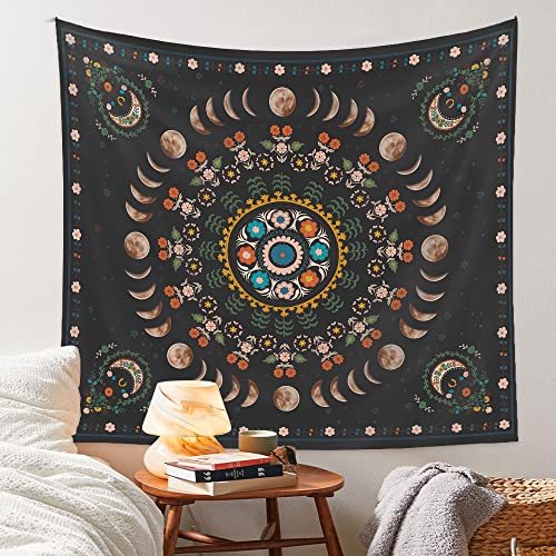 【DECORATIVE】:This moon phase tapestry for bedroom aesthetic comes with great picture and vivid colors,this floral tapestry with advanced HD printing technology will shows a fashionable and long-lasting effects in an effort to brightens up the room.
