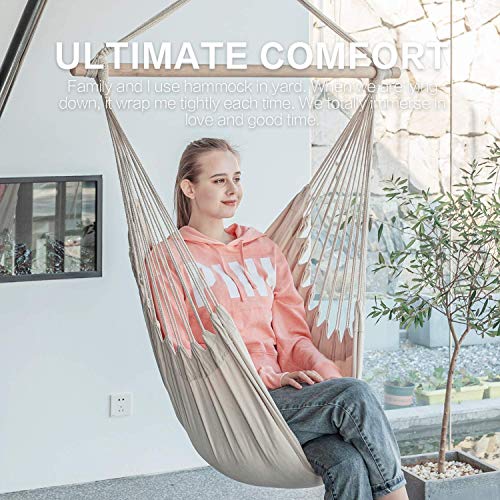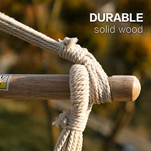 Heavy Duty Weight Capacity: It uses heavy cotton canvas that can bear 330LBS, thicker ropes and more solid wood sticks. The two ends of the sticks contain grooves to prevent the rope from sliding. The premise of enjoying comfort is safety.