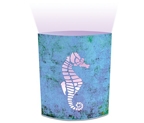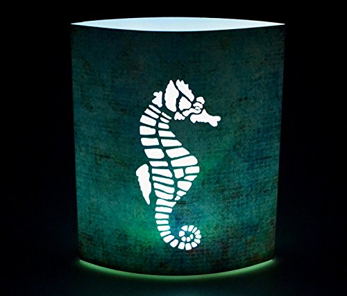 WHAT’S INCLUDED – One energy efficient LED lantern with a laser-cut “Seahorse” print that features vibrant multi-color lighting. The light measures approximately 5.1″L x 2″W x 6.3″H. Requires 2 AA batteries that would last for a month (batteries not included).