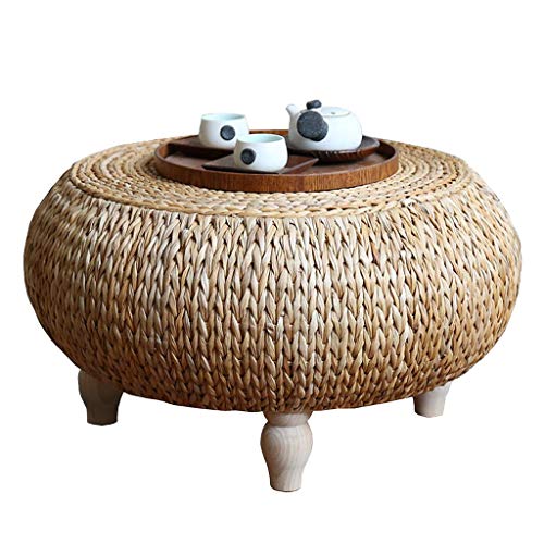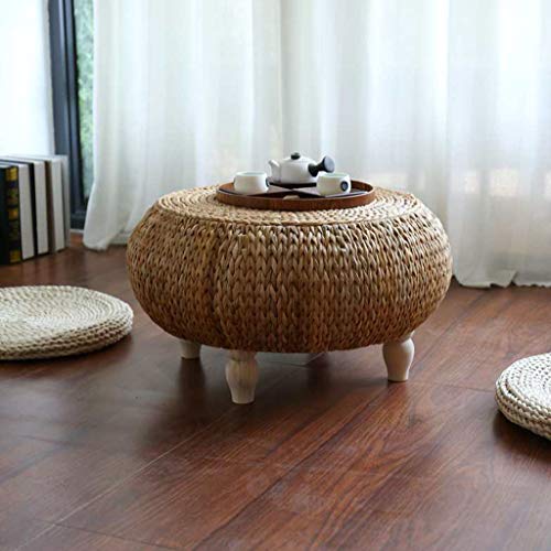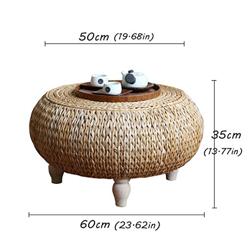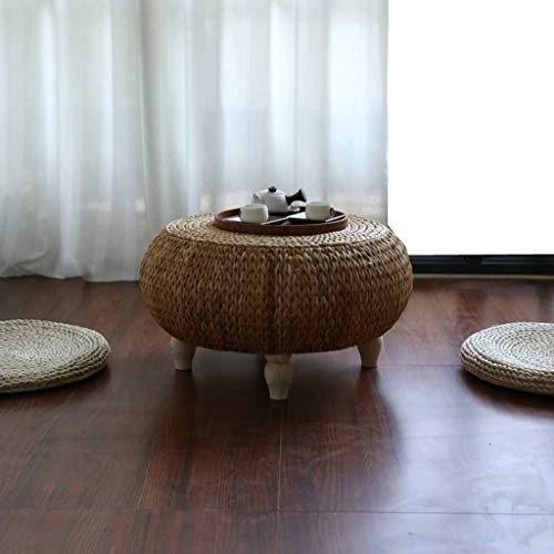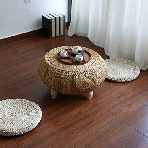 ♦[Material]: It is made of pure natural bulrush, hand-woven, firm in texture, good in toughness, good in air permeability and high in density. Solid wooden table legs, stable and durable.