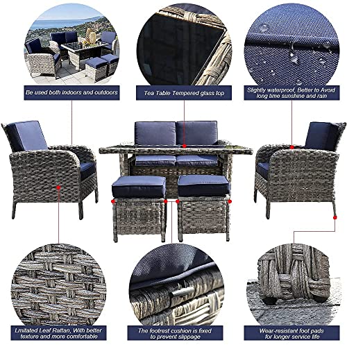 Rattan Sofa High 6-Seating Golden Brown Gray Color Imitation Leaf Soft Wicker Patio Conversation Dining Sofa Set Navy…