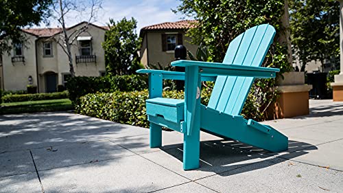 Our all-weather material is built to resist all four seasons and a range of climates including hot sun, snowy winters, salt spray, and heavy winds. | Resin TEAK cleans easily with soap and water, or an easy homemade bleach mixture and requires no painting, staining, or waterproofing. | Resin TEAK products are made with a high-density material that offers strength against splinters, cracks, chipping, peeling, or rot. | Iconic, timeless Adirondack chair design. Designed with style & comfort for relaxing in your backyard, patio, or garden. |