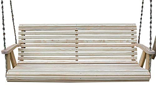 Constituted of only #1 kiln-dried pine. Weight limit = 800 lbs, We only use rust resistant hardware on our swings. All swings are one hundred% handcrafted. Swing dimensions: 63.5W x 28D x 24.5H in. Seat dimensions: 57W x 19D x 23H in.