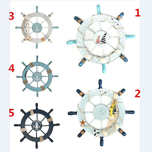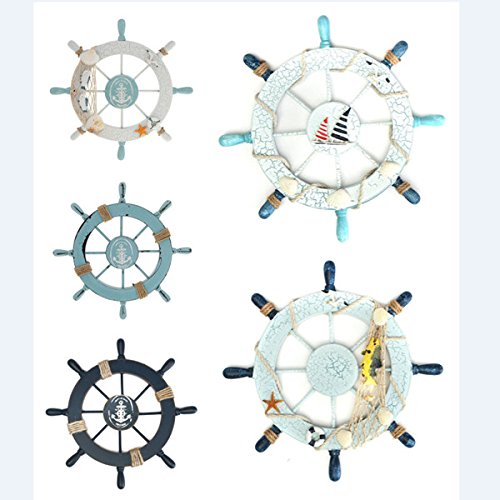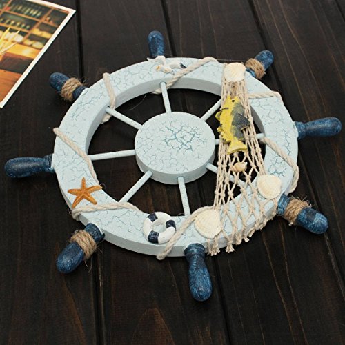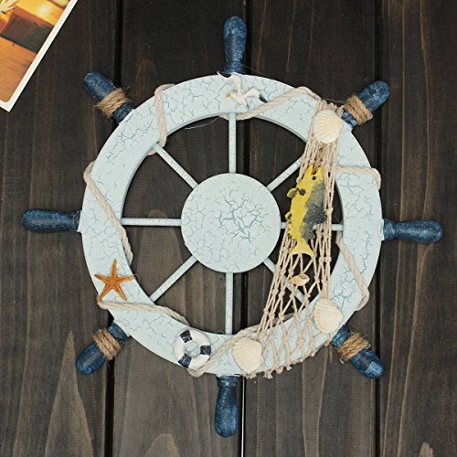1 * Nautical Wooden Ship Steering Wheel with Starfish Sea Shell Seagull Lifebuoy Ring Fish