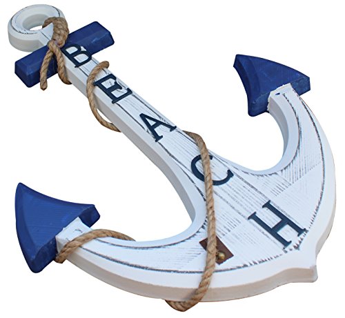 White and Blue decorative beach anchor is handcrafted with top of the range wood and sturdy rope. Perfect for any ocean themed home and kitchen decor. Would Look great next to similar anchors fish netting shells and lighthouse decorations | Great addition to any sea theme party.