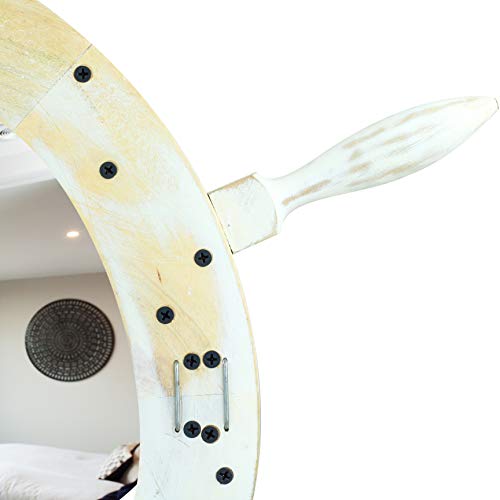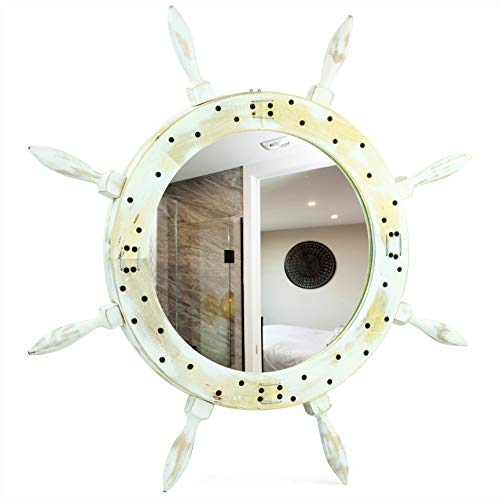 Rustic & Antique combined together to provide the absolute best conceivable Nautical Decor Mirror Ship Wheel. Crafted with quality material and craftsmanship, this can be a lovely decor yet a functional multi-spot Wall Mounted Mirror. Nautically inspired to match up your needs for Nautical-themed decor and other Quite a lot of necessities. This nautical rustic premium ship wheel crafted from solid hardwood is sure to last you decades. Nautical rustic ship wheels come in Quite a lot of colors and designs. Specifically designed keeping in mind the nautical rustic theme, rustic ship wheels features rusted screws and bent spokes so as to add the overall decor look and sophistication to it. Keep exploring Nagina International for more impressive & quality Home Kitchen Decor Gifts Games and Quite a lot of other articles. Each and every transaction with Nagina International is secured by Amazon. We stand for 24×7 Customer service & Improve.