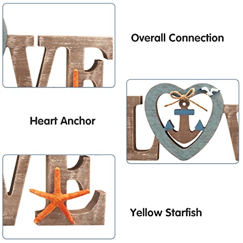 ELEGANT DESIGN – The wooden love letters is cleverly combined with “L”,”V”, “E” and wooden hearts. The wooden love heart is inlaid with a sea anchor with seagulls and twine bow knots to highlight the ocean beach style. The surface of the letter “E” is decorated with yellow starfish to make it more lovely in summer.The wooden love letters create a rustic style for wall decoration and create a warm and popular decoration for the home.
