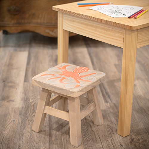 This stool is designed and handmade individually by skilled artisans. It is made of the highest quality acacia hardwood so it will last for years to come. It is hand carved and painted. It weighs 4 lbs and measures approximately 11 x 11 x 11 inches.