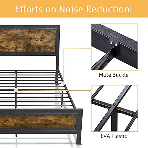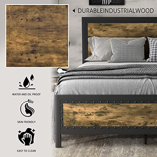 【UNIQUE DESIGN】 The headboard and footboard made of high quality medium density fibreboard are decorated with rivets. Grey strong metal frame rich your room in Industrial and unique individualism.