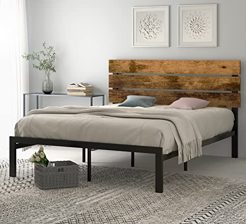 Industrial/Rustic style:The combination of wooden panels and metal slats takes a strong industrial/rustic flair that may be suitable for industrial, rustic, transitional and farmhouse decor homes. The headboard features an open horizontal-bar design and the wood grain pattern adds a natural accent.
