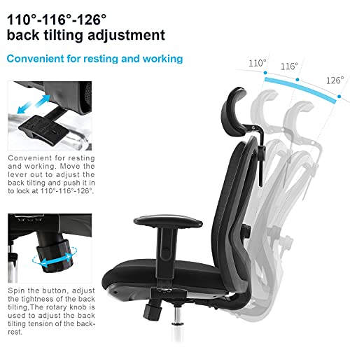 ★【Multiple Adjustments】5 ergonomic adjustabilities of this computer chair help you to find the most comfortable seating position for a long term sitting. Adjustable back support, headrest adjustment, stepless seat height, and tilt adjustment plus height adjustable armrests. This executive swivel chair provide you a customized seating experience.
