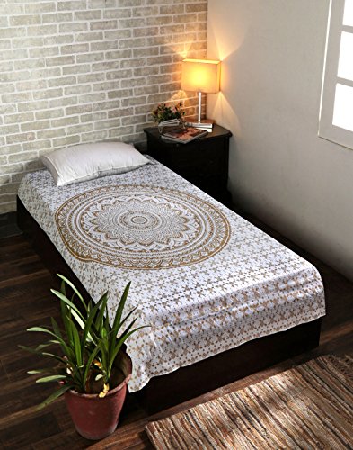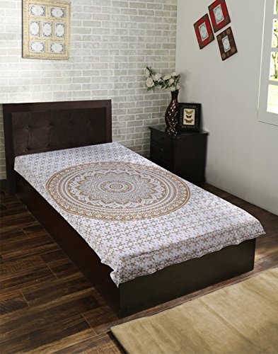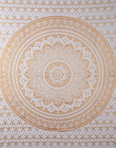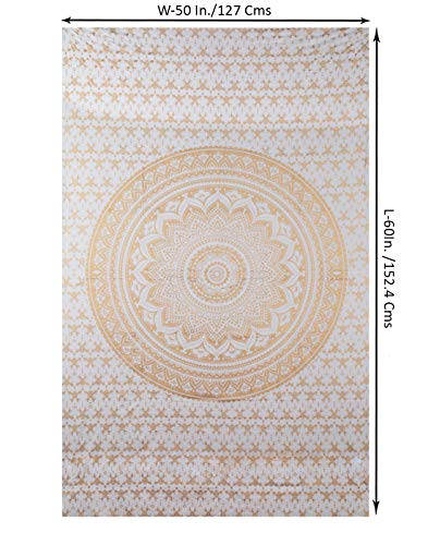 Golden White Tapestry Measures 50×60 Inches Made of 100% Cotton Fabric With Screen Printed Design on it