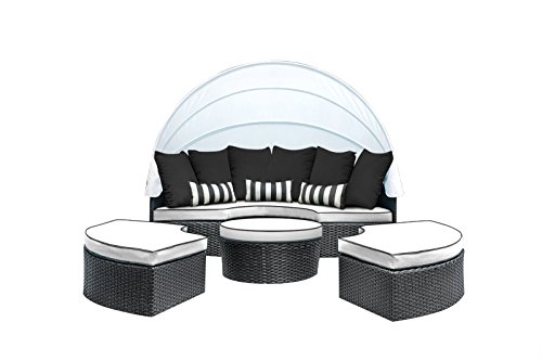 The sombra is a latest daybed exclusively designed by solis & draws inspiration from the modernist culture. The elegant round silhouette only adds to the sombra’ s appeal. This deep seating collection features a weather-resistant hand-woven seating offered in a stone brown rattan exclusively designed by solis & constructed from lightweight hand welded heavy Gauge aluminum framing with powder coating for an additional layer of protection from rust & Nature’s elements. Uniquely paired with plush all-weather USA made 100% acrylic white cushions with black welting & black toss pillows with black/white stripe accent pillows. Art meets functionality connection meets individuality the sombrapiece are a conversation starter. Details: set includes: one (1) curved daybed, one (1) canopy, two (2) curved ottomans, one (1) round ottoman materials: PE wicker rattan, powder coated aluminum frame, 100% acrylic fabric rattan color: stone brown cushion color: white with black welting toss pillows: black & black/white stripe dimensions: sofa daybed: 70 in. H x 43 in. W x 87 in. L curved ottoman: 18 in. H x 31 in. W x 61 in. L round ottoman: 18 in. H x 31 in. Dia the digital images they display have the most accurate color imaginable. On the other hand, because of differences in computer monitors, they can’t be accountable for variations in color between the true product & your screen.