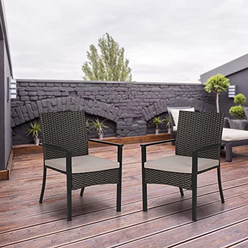 Superior Quality: Different from the traditional metal chairs or wood chairs, The entire main parts of these outdoor dining chairs are woven of premium PE rattan aside from the frame, which has good ductility and water resistance. It is durable with strong load capacity and not easy to rust and deform. Moreover, additionally it is lightweight and easy to move. Even children and the elderly at home can easily move it