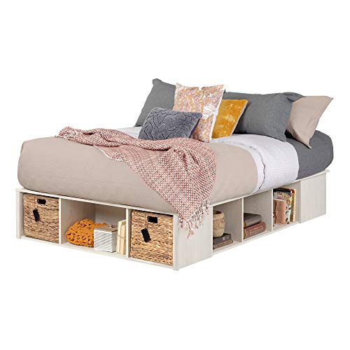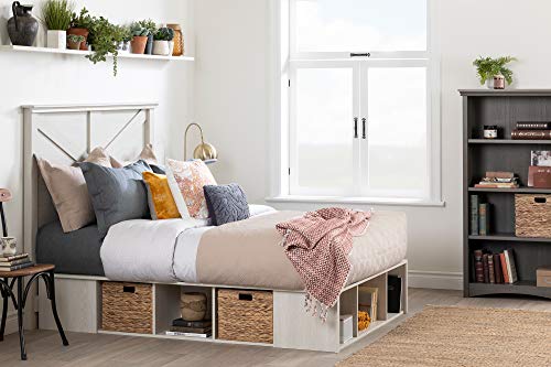 An original, contemporary bedhere’s an unusual, ingenious piece: a bed with multiple storage spaces! You get a total of nine open spaces: Three apiece on three sides. The space under the bed is as large as a bookcase – You’ll be able to use it for books, warm sheets, and accessories. baskets includedto help you organize your things and give you some closed storage space, The bed Comes with two wicker baskets. They’re designed to fit perfectly in eight of the open spaces, so You’ll be able to play with more than a few configurations. The storing baskets are also sold separately If you wish to add more. The beauty of a basket compared to a drawer? You’ll be able to move it around. So You’ll be able to keep a bunch of toys in it and then take it over to the kitchen for your kid to select. 5-year limited on furniture, 30-day satisfaction on accessoriessouth Shore is proud to stand in the back of this storage platform bed with wicker baskets with an exclusive 5-year limited on furniture, 30-day satisfaction on accessories. Shop with confidence knowing your purchase is at all times covered. All our products meets or exceeds North American safety standards and our packaging are tested and certified to reduce the risk of damage all through shipment. This item is shipped in 1 box, make sure to have a friend with you. Assembly is required by 2 adults and tools aren’t included. If you have questions regarding this product or need assistance do not hesitate to Contact South Shore furniture 7 days enhance. This product is made in North America with laminated particleboard. Baskets included, mattress, headboard and accessories not included.