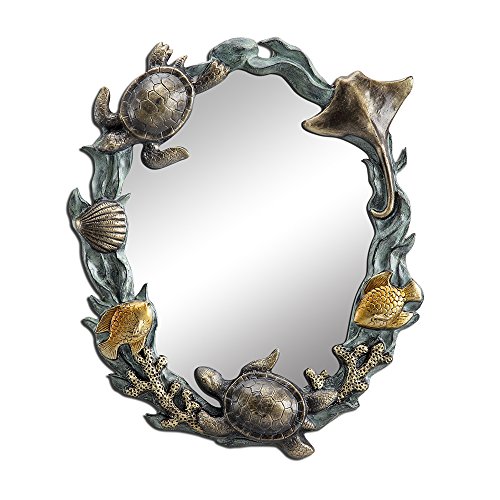 This Turtles and Sealife Wall Reflect, by means of SPI House, is Made from aluminum. It measures 19.5 inches by means of 16 inches by means of 2 inches. It makes a superb present.