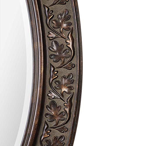 CONTEMPORARY DESIGN: Bring an elegant look to any room with this 23” W x 34” H bronze oval mirror. The oval frame features an embossed flowing leaf design, finished in an aged bronze with antique gold undertones. The mirror has a 1″ bevel. Could also be hung either vertical or horizontal.