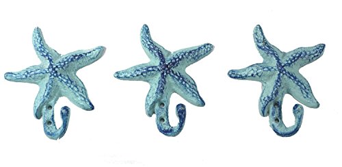 Starfish Cast Iron Wall Hooks Antique Blue – Set of 3 for Coats, Aprons, Hats, Towels, Pot Holders, More