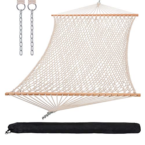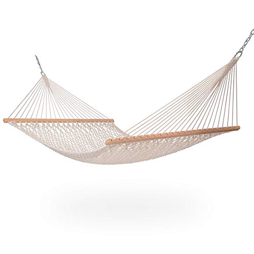 SUNCREAT Hammocks Traditional Rope Double Hammock with Hardwood Spreader Bar and Carrying Bag, 450 lbs Capacity, Natural