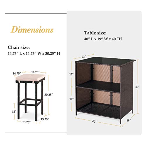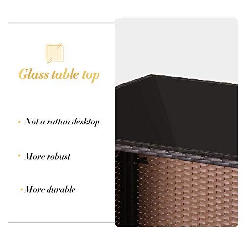 HIGH-QUALITY MATERIAL – The durable and UV resistant ratten wicker has a texture of natural and good coloring. The cross-shaped bar table set made of powder-coated solid steel frame has good stability and large capacity.