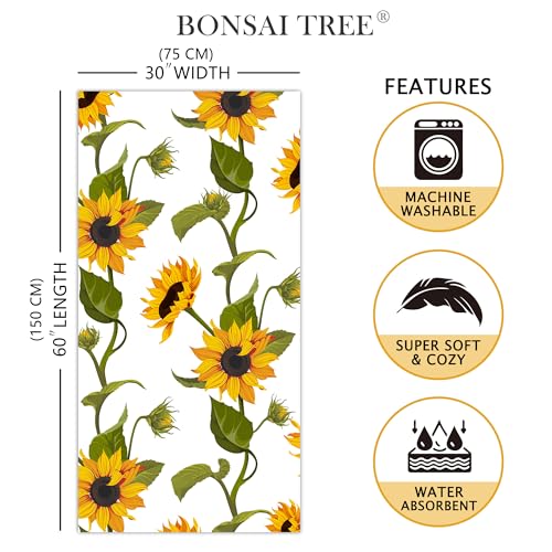 Bonsai Tree Sunflower Beach Towel, Coloured Flower Microfiber Bath Towel Gifts for Kids Girl, Sand Free Quick Dry Trip Towels for Women Men Adults Pool Sports Towel 30″ X 60″