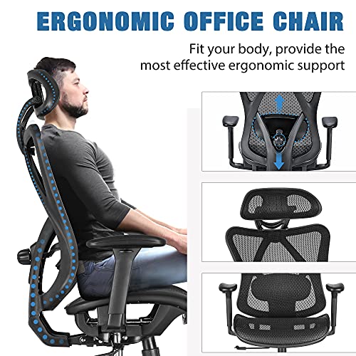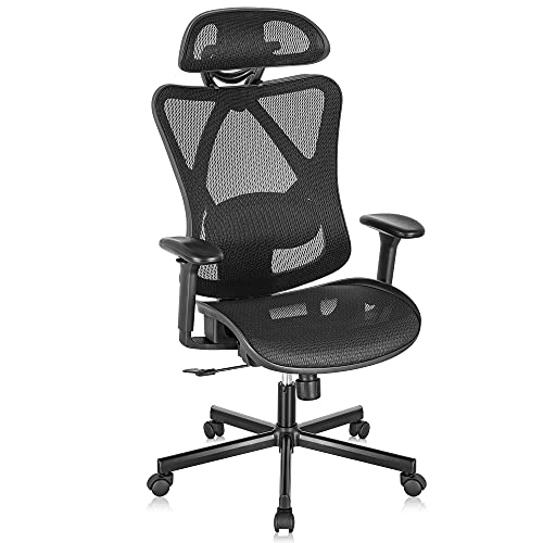 ERGONOMIC LUMBAR SUPPORT : The ergonomic office chair will fully support your spine and allow for perfect posture. You can easily adjust the lumbar support up & down, front & back to get suiatble support. So you can go about your day without an aching back. With the adjustable headrest, lumbar support, arms and mesh seat, you can always well seated for a healthy and comfortable life way.