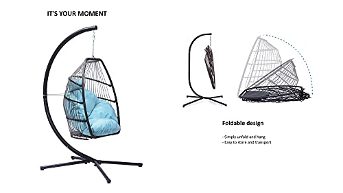 【EASY TO ASSEMBLE & DISASSEMBLE】 This chair will also be folded and stand frame is simple to fix in conjunction with the included tools and accessories, Safety strap helps keep the hanging chair safely in place even as getting in and out of the chair; Chair provides a relaxing seat for one person