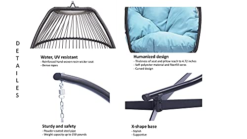 【STURDY AND COMFORTABLE】 Seat and frame of egg chair is constructed of rattan resin wicker wrapped around powder-coated metal for weather-resistant protection, strength and durability; Back features nylon rope, Seat cushion and headrest pillow feature with thick polyester material and fiberfill cores
