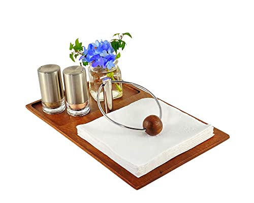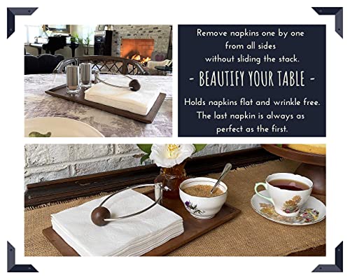 Superior Quality: The table napkin holder is made with premium quality, natural mango wood, completed by a food-grade walnut finish. The weighted arm was designed with durable stainless steel, which adds shine, strength, and ensures long-lasting use.