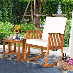 Solid Wood Ensures Strong Construction: Made of natural acacia wood, the rocker set is sturdy for long time out of doors the usage of. The chair has strong frame to resist the weight as much as 360lbs, which is more than twice the weight of adult.