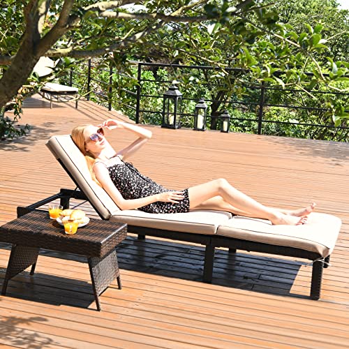 【Selected & Durable Materials】Crafted from the weather-resistant PE rattan and heavy-duty steel frame, this chaise is stable and durable enough to hold up to 360 lbs. And the exquisite woven rattan can withstand the fluctuating weather and provides a comfortable zone to relax.