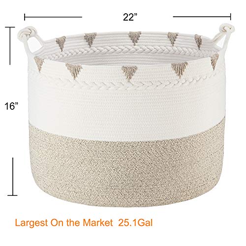 TerriTrophy Cotton Rope Woven Laundry Basket Largest 22in x 22in x 16in