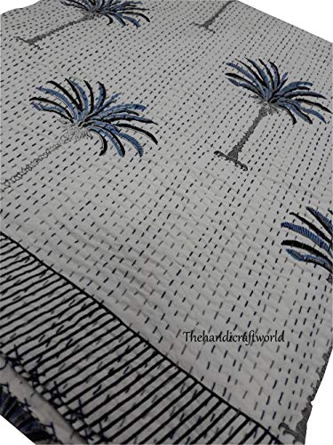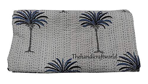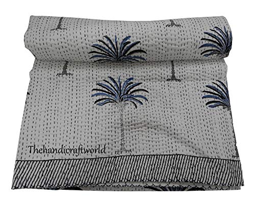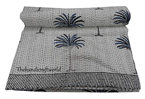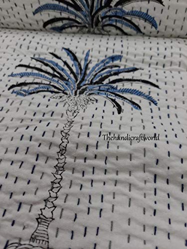 thehandicraftworld Indian Handmade Palm Tree Block Printed Kantha Quilt Palm Tree Print King Size Pure Cotton Double…