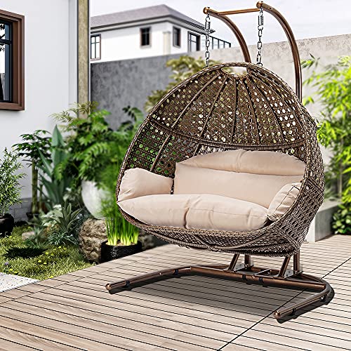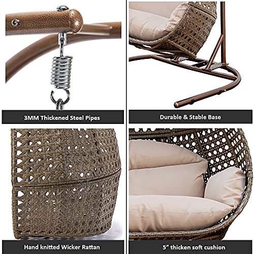 【Sturdy Framework】The hanging egg chair is constructed by 10 metal keels and UV secure polyethylene rattan resin wicker, supported by powder-coated steel stand, assembled by 304 stainless steel accessories, no worry about rusty problem, prolong service life. This functional hammock chair is simple yet tasteful, easily matches the style of any bedroom, patio, backyard, and more!