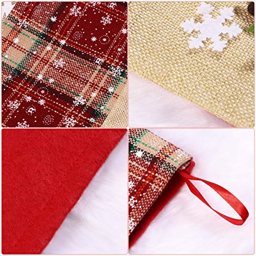 3 Different Designs StockingsLovely patterns and bright colors combined with classic Santa/snowman/reindeer design, with three different Christmas socks at a time, each one is very popular with children. | Large Enough to Hold all kind of GiftEach Christmas stocking is about 18.7″ to enough so that you can put a large number of Christmas gifts, the opening is large enough, the space is large, and it is easy to put in or take out. | Sturdy Hanging LoopChristmas stockings, rustic feel, warm and luxurious feeling, linen, fluff, very comfortable to touch, each stocking has a ribbon that can be easily hung next to the Christmas tree or fireplace. |