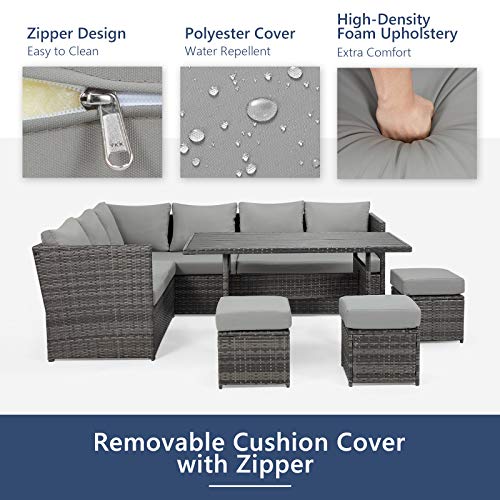 【Exquisite Design & Versatile】The wicker patio furniture set combines the functionality and a refined classic style, easier to match any preexisting decor. This outdoor sectional set are light enough to move around and easy to be placed in an endless number of configurations. It’s an indispensable décor to your porch, garden, lawn or yard.