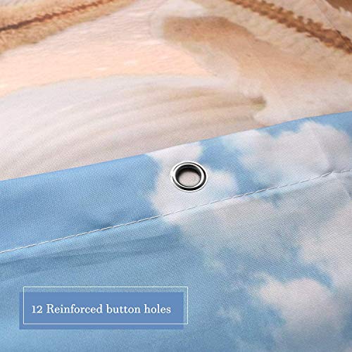 The shower curtain incorporates 12 metal grommets along its top, together with 12 plastic hooks, it is convenient for decorating and the use of soon once received