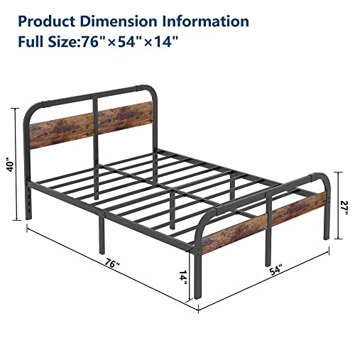 No Box Spring Needed: Full bed frame fits a matching mattress size L75″x W54″, put your latex, spring or memory foam mattress directly on top of the metal platform, and no box spring needed.