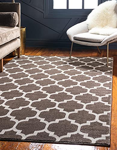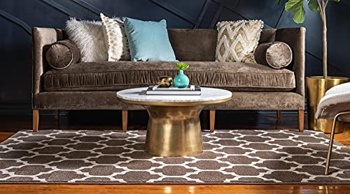 Unique Loom Trellis Collection Modern Morroccan Inspired with Lattice Design Area Rug, Rectangular 5′ 1″ x 8′ 0″, Brown/Beige
