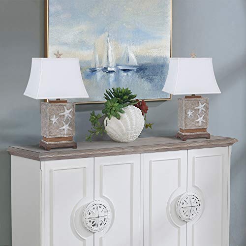 Twin Pack Square Starfish Table Lamp H26″ Phoenix Coastal Style White Nautical