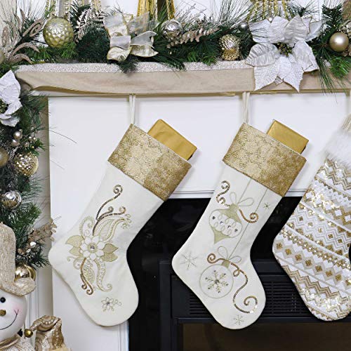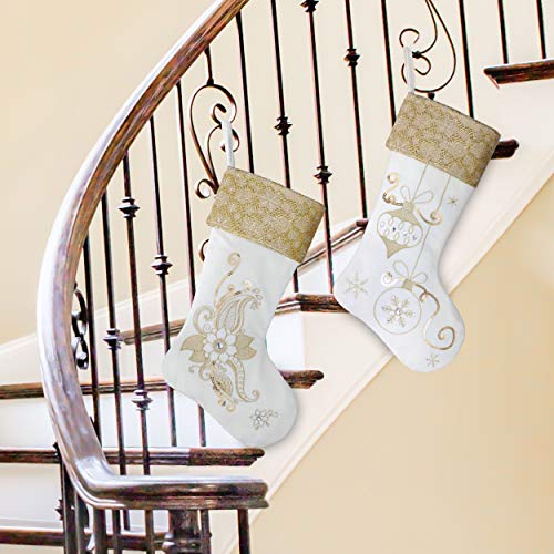 Theme: Festival white gold stockings celebrate the wonder surroundings of luxury. Add an elegant luxury style on your Christmas decorations.