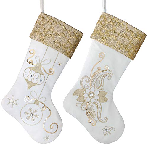 Size and Design: Diagonal size is 21 inch/54 cm(Loop Not Included). The blend of classic Christmas flower and ball icons increase the worth of the stockings.