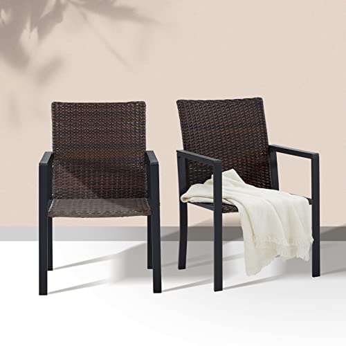 TIGHTLY WOVEN PE RATTAN: Outdoor wicker material features strong wrapped edges, more durable than other rattan chairs BUILT-to-LAST: All-weather outdoor wicker chair features a powder-coated black-finished frame against rust and paint-off WIDER SMOOTH ARMRESTS: Designed with a curved backrest and smooth armrests, add extra ease and comfort to your leisure time