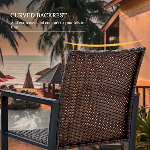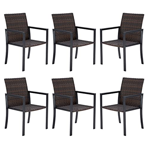 VICLLAX Patio Chairs Set of 6, Outdoor Dining Chairs with Armrests for Garden, Wicker Lawn Chair, Black