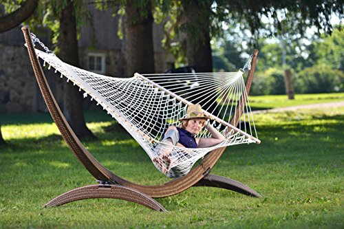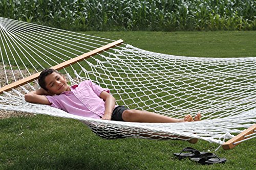 This rope hammock is Produced from one hundred% cotton and is woven tightly for increased body contact. The hammock is made with 3-ply twisted cotton rope that complements strength and durability, but on the same time the cotton fibers continue to respire for dry, at ease relaxing. 60-inch hardwood spreader bars are finished with 3 coats of marine stain for weather resistance. The hammock bed is 84 x 60 inches, with a total length of 144 inches. Contains two adults. 450 pound capacity. A chain hanging kit is included. Can be utilized with Vivere #15BEAM heavy duty 3-beam hammock stand or #EFHTS hammock tree straps (sold one after the other).